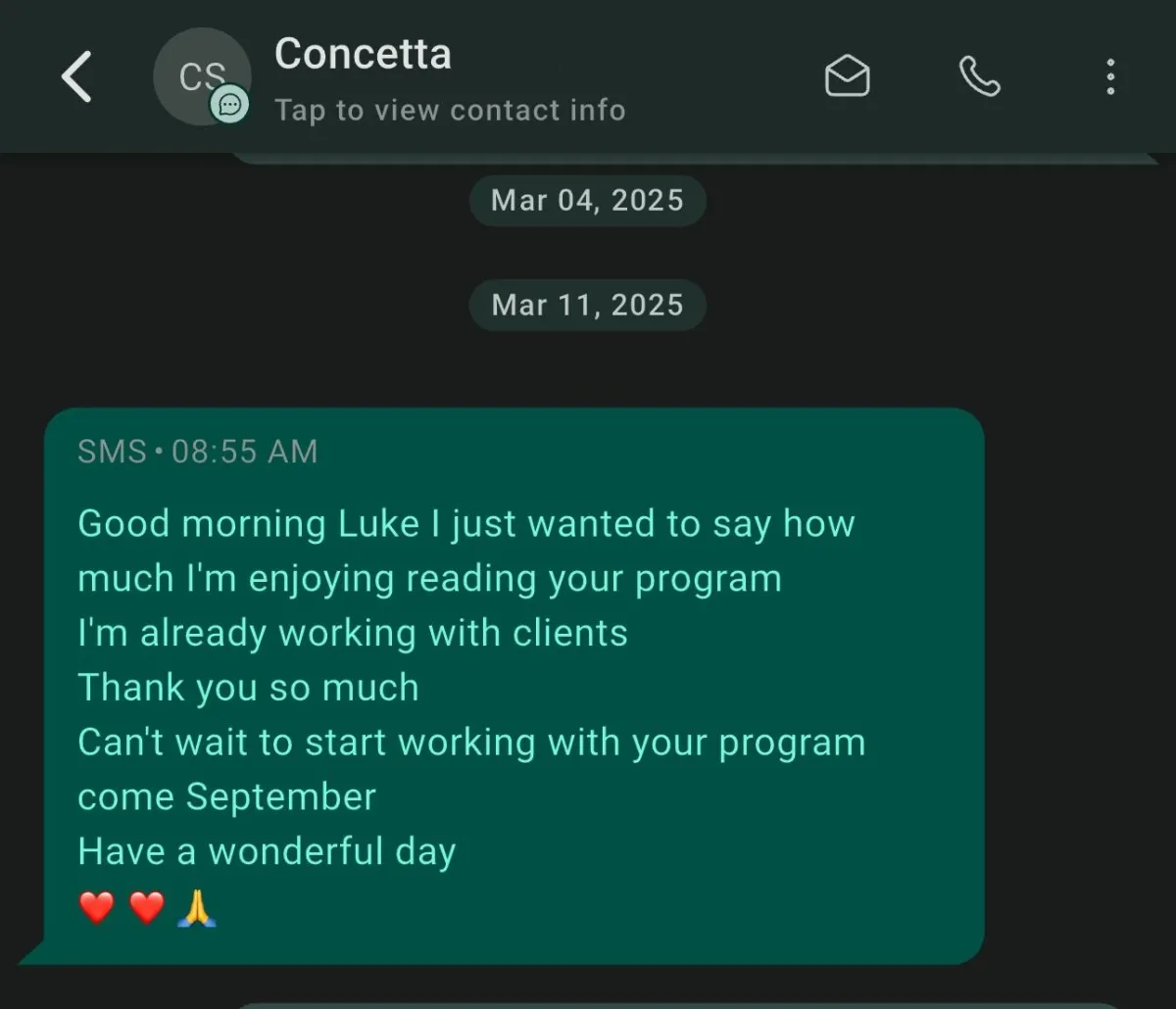 Luke’s journey is one of radical transformation. From battling addiction, failed businesses, depression and toxic relationships, to becoming a 7-figure entrepreneur and global leader in the coaching and personal development space. He’s trained elite sales teams, consulted for top-tier entrepreneurs, and helped scale multiple coaching companies well into the six and seven figures.